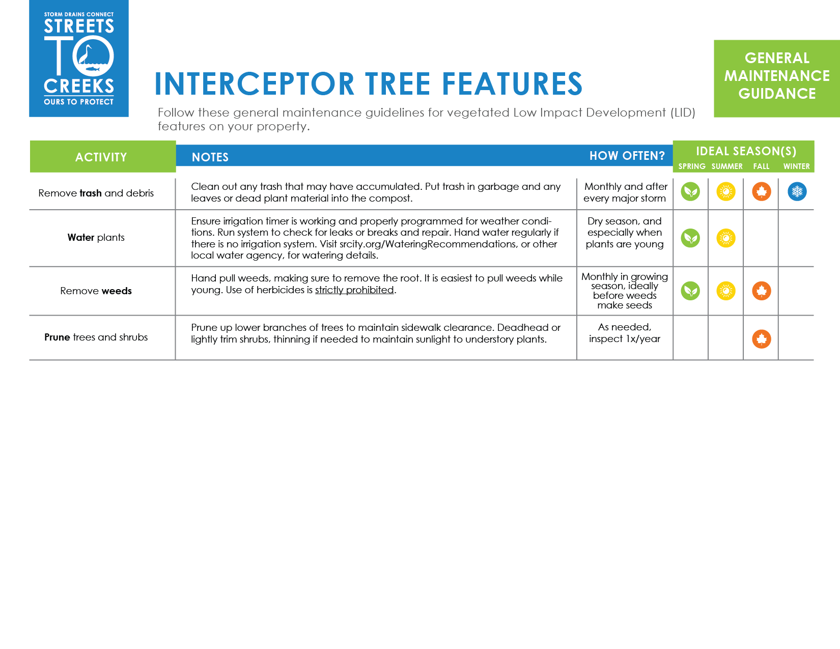 FAQRESOURCES FOR OWNERSMAINTENANCELID FOR LANDSCAPE PROFESSIONALS LID Feature Maintenance Not sure what LID features you have? Visit our Resources for Owners page. View fullsize View fullsize View fullsize View fullsize View fullsize View fullsize View fullsize View fullsize Download All Sheets (PDF)